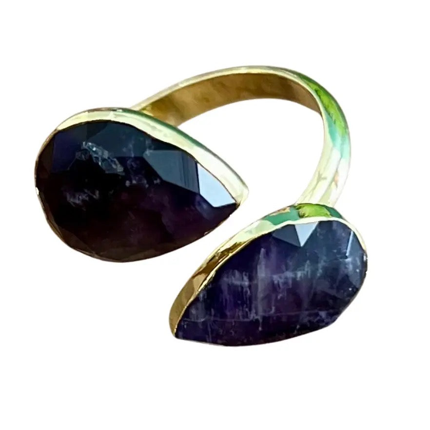 Amethyst Gold Teardrop Wrap Ring
