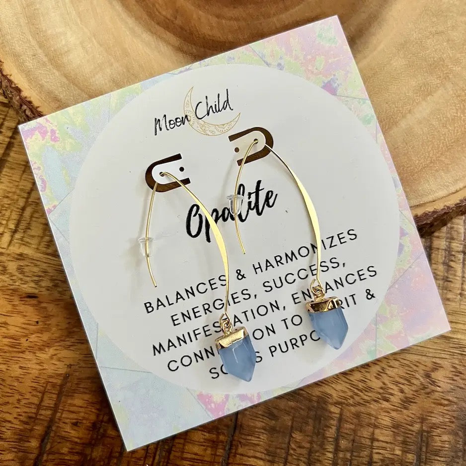 Opalite Gemstone Point Gold Earrings